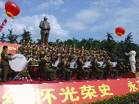 中新社长沙六月二十五日电(邓霞周海清)为纪念毛泽东亲手创建中共韶山特别支部八十周年,大型音乐舞蹈史诗《东方红》交响合唱音乐会,今日在毛泽东的家乡湖南韶山进行首次实景演出。四千余人在毛泽东铜像下聆听那些传唱了半个世纪的熟悉的经典旋律。