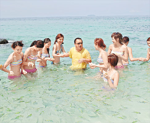 中新网6月27日电 据香港媒体报道,《2005年度香港小姐竞选》20位佳丽前日与嘉宾曾志伟继续在布吉拍摄外景,一班佳丽前日一早乘坐快艇前往水清沙幼的鸟蛋岛进行拍摄。抵达后马上换上三点式泳装,在岛上进行浮潜、沙滩排球,喂鱼和掷飞标等拍摄,除了尽展美好身段外,同时亦展现港姐活力的一面。
