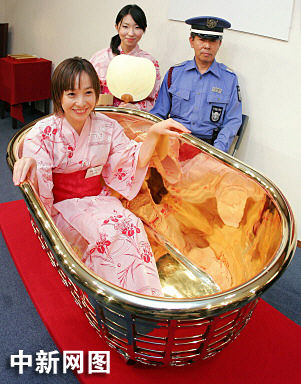 2005年6月28日,日本东京一家珠宝店举行了促销招待会,一名由当地酒店连锁店雇佣的模特坐在一个金色的浴缸里。这个浴缸由18K金与无缝钢材制成。酒店为吸引顾客,定制了六个重达80公斤的金浴缸,每一个定价达12亿日元。