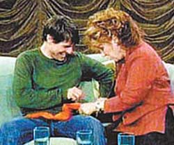 日前阿汤哥接受美国广播公司节目《The View》访问,照例带着姬蒂上节目的汤姆克鲁斯,一开场就被主持人要求重跳一次‘沙发舞’,阿汤哥不但当场答应,还带着姬蒂一起跳沙发,两人就像小孩子一样哈哈大笑。没想到,主持人接下来要求他乖乖坐好,然后拿出安全带将他牢牢固定在沙发上,汤告鲁斯自己看了都觉得好笑。