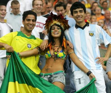 阿根廷本场比赛缺少了多名主力,主教练佩克尔曼在排兵布阵上行出险招。出人意料的让海因策出任中后卫,同时,锋线上也排出了小德尔加多这样的冷门球员顶替停赛的萨维奥拉,而萨穆埃尔、特维兹、埃马尔等大牌球员则坐在了替补席上。巴西队则基本上主力尽遣,同时派上了罗纳尔迪尼奥、罗比尼奥、卡卡和阿德里亚诺等多名攻击手。