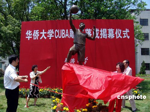 七月二日上午,由华侨大学香港校友会捐赠给母校的CUBA标志性雕塑揭幕仪式在该校的春华园内举行。据雕塑的设计者——华侨大学艺术系孙德明老师介绍,该雕塑由华侨大学香港校友会捐资十三点五万元,历时一个多月建造的。雕塑高三点四米,以华大学生为原型,设计成具像、动态的单手投篮的动作,体现了当代大学生积极向上、拼搏的精神风貌。作者:石勇
