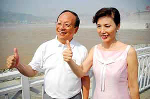 在离大坝不到二百米的近坝观景点,蒋孝严夫妇频频合影留念。他说:“我和夫人也曾在埃及的阿斯旺大坝、巴西伊泰普大坝前合过影,但三峡大坝最雄伟!”他笑着对随行记者说:“你们一定要把这张照片拍好!”