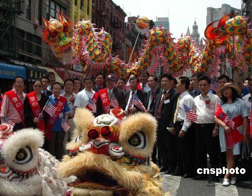图:纽约华埠舞狮、龙庆祝美国国庆