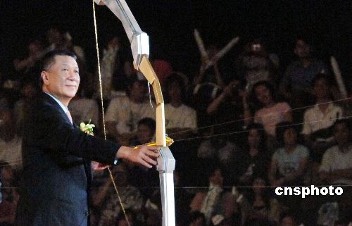 开幕式上澳门特首何厚铧扳弓射箭点燃圣火