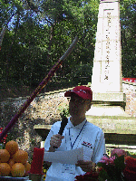 年届七十的他怎会忘记六十年前的战火硝烟,怎会忘记日本帝国主义的残酷暴行,情不能已处,他的声音几度哽咽。但是,今天他以团长之职带着参加“湖湘文化之旅”的两岸学子前来祭奠躺在这里的民族英雄,他希望青年一代永远铭记历史。