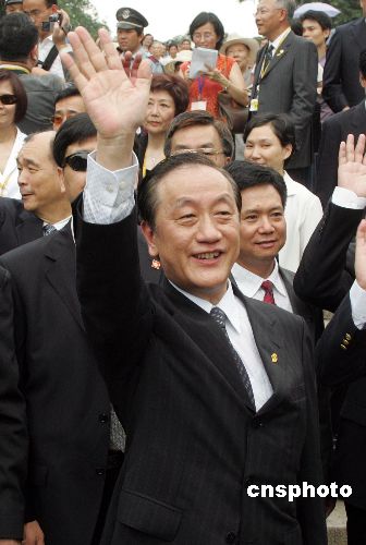 新党主席郁慕明率领的新党“民族之旅”访问团七月七日拜谒广州黄花岗七十二烈士陵园。郁慕明向在路旁欢迎的广州市民挥手致意。作者:毛建军