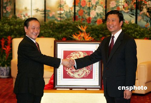 李源潮向新党大陆访问团赠送了两件礼物,一件是云锦“金丝盘龙”,另一件是金箔制作的《论语》。郁慕明赠送给江苏的仍旧是一个交趾烧陶盘,主题是“祥狮献瑞”,寓意团圆和缘分。
