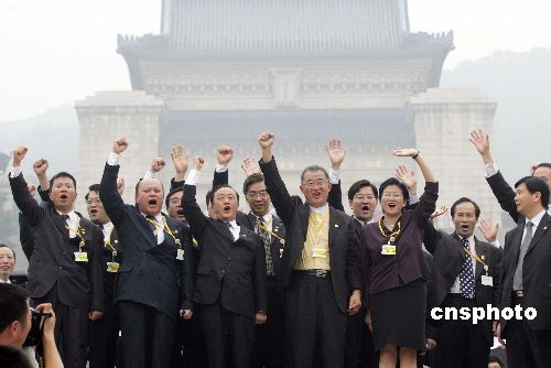新党主席郁慕明率领的新党“民族之旅”访问团七月八日在南京拜谒中山陵。作者:毛建军