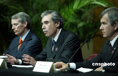 七月十一日晚,美国商务部长古铁雷斯、美国贸易代表波特曼、美国农业部长约翰斯在北京召开记者会,就第十六届中美商贸联委全会情况回答记者提问。作者:廖文静