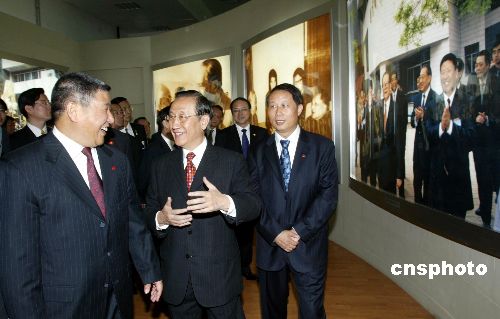 郁慕明在中国人民大学校长纪宝成(左)的陪同下,参观该校校史展。作者:史利