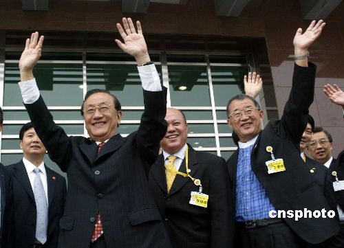 七月十二日,新党大陆访问团在中国人民大学参观访问,新党主席郁慕明向师生们挥手致意。作者:史利