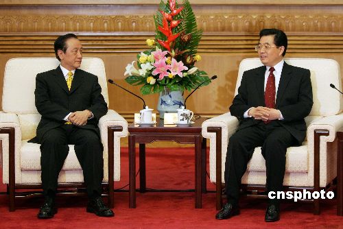 胡锦涛首先代表中共中央,向郁慕明主席和新党访问团全体成员表示热烈欢迎和亲切问候。