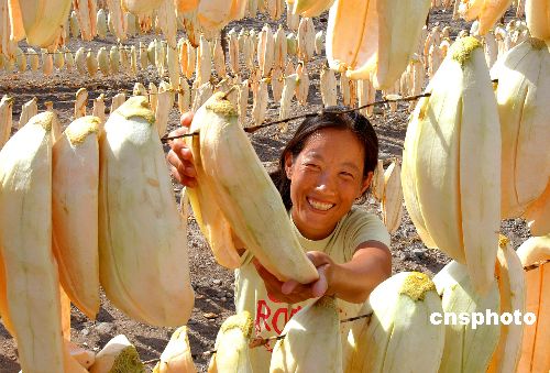 7月11日,新疆吐鲁番地区鄯善县鲁克沁镇沙坎村的农民在晾晒瓜干。素有“哈密瓜之乡”美称的鄯善县,今年哈密瓜获得大丰收,农民们抓紧时间晾晒瓜干。作者:刘健