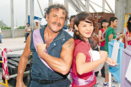 中新网7月19日电 据星岛日报报道,港台“全天候高空工作安全加油站”活动昨日于东涌吊车站地盘举行,活动上郑希怡(Yumiko)、官恩娜(Ella)及关智斌与工程人员大玩问答游戏,其间Ella口快快将“下列身体部位”误说成下体,令身旁的Yumiko和关智斌不禁失笑。