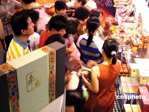 7月19日,“海峡两岸农业合作展览暨台湾农产品展销会”在上海举办,一家食品公司在展会中以“送礼佳品”的旗号展销包装精美的大枣,受到许多市民的青睐。作者:井韦