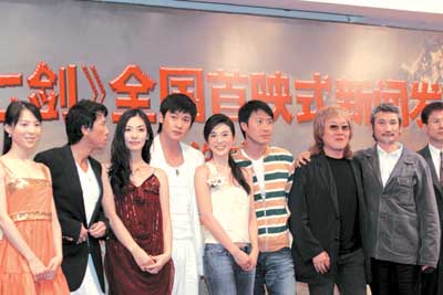 中新网7月21日电 据北京娱乐信报报道,昨天下午,徐克新作《七剑》在北京举行了新闻发布会。在大侠徐克的带领下,来自内地、港台以及韩国的明星黎明、甄子丹、杨采妮、陆毅、孙红雷、张静初、金素妍等齐聚发布会现场。