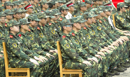 中新社香港七月二十日电 首届“香港青少年军事夏令营”今日在解放军驻香港部队开营。来自香港八十四所学校的一百名学生将在军营度过为期十一天的军事夏令营生活。