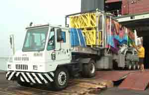 环球嘉年华首批设备运输车队由56辆车组成,运送20呎和40呎两种集装箱共278个,另有71个异型货柜。7月10日17时,这些设备在天津港装车出发,走京津塘高速公路到达北京,于当天23时进入2005北京环球嘉年华6万平米的活动场地。