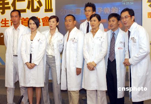 无线电视剧集《妙手人心Ⅲ》7月22日在香港举行“燃亮爱心首映会”,剧中众演员身穿医生袍出席活动,为25日起播映宣传造势。作者:邓庆乐