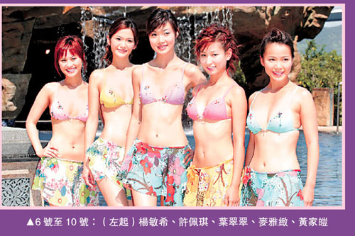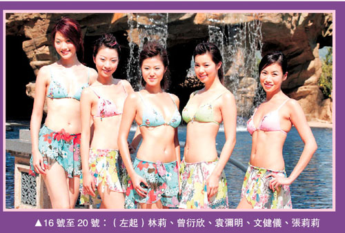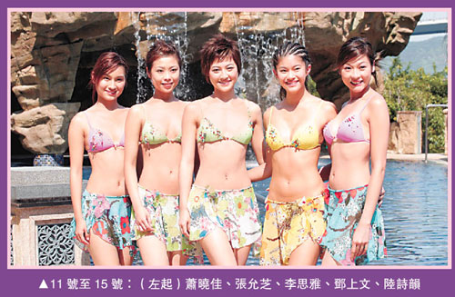 中新网7月26日电 据香港《大公报》报道,二十位候选港姐昨日在珀丽湾贝壳广场拍摄“港姐谢师宴”及个人介绍宣传片,众佳丽分别穿上大会安排的三点式泳衣,在泳池会见传媒。由于今次已是港姐穿着第五套泳衣示人,相比过往略为多些,大会方面亦承认,节目监制何小慧表示:“港姐的口号是『美丽由心出发』,希望能够表现到她们有爱心的一面,更突出美丽的一面让观众欣赏,加上今年的夏天特别炎热,故此会越穿越少布呢!”至于大会将为众佳丽度身造订多一套泳衣,好让佳丽们于决赛当晚穿。