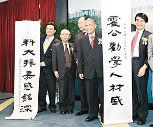 为答谢霍英东的捐赠,科大今日赠送一副对联予霍英东,内容为“霍公劝学人材盛,科大拜嘉感铭深”。朱经武说,稍后会与科大师生、校友及董事会商讨正式报答霍英东的形式,不排除采用冠名的方法。完