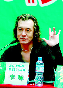 中新网7月27日电 据沈阳晚报报道,昨日,2005《梦想中国》东北赛区总决赛开赛,央视名嘴李咏以活动总策划人的身份来沈当评委。在媒体见面会上,一贯爱耍酷的李咏始终以墨镜造型示人。当有记者示意其摘下墨镜给个“全景”时,身旁工作人员代其解释他连日来的奔波劳累,说其满眼布满血丝。好在李咏还算“听话”,但却只给摄影记者“5秒钟”黄金时间。随后,李咏用他灵活的手指变换着他独具个性的数字造型。要说“5”还算正常,那么,他那“4”和“3”的造型可真是他的独创了,好在“3”本来就是《非常6+1》的特色之一。