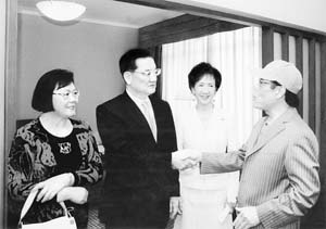 看了这两幅画后,连主席夫妇十分欣赏和感谢,同时热情邀请我方便的时候去台湾举办画展。怕耽误连主席的行程,我们很快即告辞离开饭店。连主席夫妇一直把我们送到门口,依依惜别。