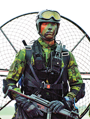 三、军演现场同时展示了空特战力包括城市突击、雪地突击、高空动力伞等各种特战伞兵,凸显台军除消极防守外、也具备敌后主动反制能力的用意相当明显;