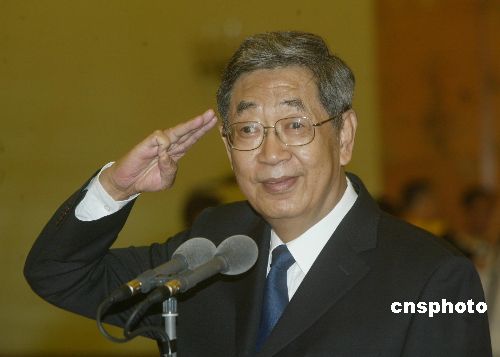 图:许嘉璐向港澳同亲同根万里行交流团致敬礼