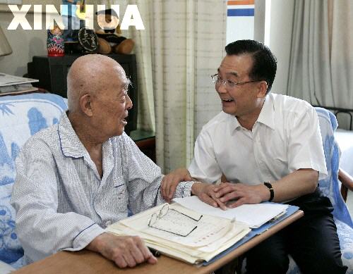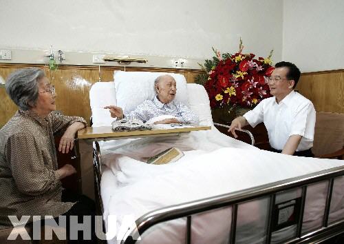 随后,温家宝来到“人民科学家”钱学森的病房,送上鲜花,向这位共和国航天科技事业的先驱表示慰问和敬意。
