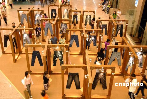 7月30日,正在香港时代广场举行Jeans Fever Exhibition牛仔裤展览,吸引不少市民观赏。香港创作人曾伟文在多个世界名牌限量版牛仔裤上绘上名人肖像,使时装与艺术融为一体。作者:洪少葵