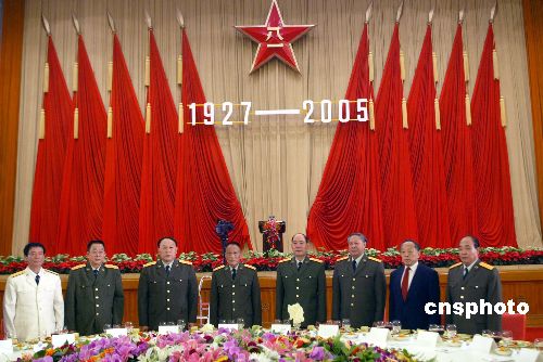 中新社北京七月三十一日电(记者陶社兰)中国国防部今天在北京人民大会堂举行盛大招待会,庆祝中国人民解放军建军七十八周年,中央军委副主席、国务委员兼国防部长曹刚川向人民解放军、武警部队、预备役军人和广大民兵致以节日祝贺。
