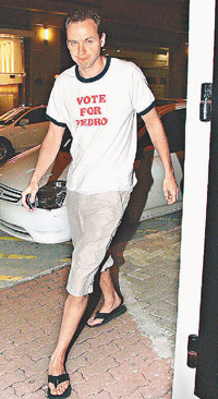 另一边,“老外新欢”于前晚九时左右,由所住大厦的走火通道极速步出,然后截的士离去,守候记者未能跟上,传媒猜测他会否到半岛酒店会合柏芝,不过“老外”所乘之的士后来折返兜客,司机向记者透露“老外”于中环云咸街下车,至十时四十分,一身街坊look,穿上T恤短裤配拖鞋的“老外”由正门步行回家,他回家时间与柏芝极为合拍,面对传媒拍照他亦神态自若,还与管理员以普通话打招呼,难怪他可以当柏芝的英文老师!不过记者问他:“同柏芝谈恋爱多久了?”他却不发一言就急步入大厦。昨晚七时,他召了部的士由寓所出发往机场,沿途欲摆脱记者追访不果,抵达机场后,记者问他是否跟柏芝一同出埠及去哪?他一概不回应就入闸离开。但柏芝经理人表示柏芝人在香港,在家中休息。
