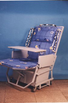 记者了解到,这种“保姆床”仿人体骨髓活动的构造原理.采用高轴前移、复合座架和靠背空间弧运动的连动支杆来保持与人体的活动姿势相一致,人体坐起时不易下滑(被动下推)和躺卧上蹭,而方便系统是采用链条传动、多臂摆动、滑道平移来实现便口开合,实现大小便自理。这一产品既可电动又可手动,平放是床,折起是椅。如电动出现故障或停电时,产品仍可通过手动装置继续操作,不影响患者的使用,而且采用遥控操作,患者可自己遥控操作,也可由护理人员在10米内遥控操作。操作者不接触强电,确保使用安全。