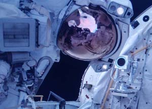 美国东部时间八月三日早上四时四十八分,美国发现号宇航员史蒂芬·罗宾逊和野口聪一开始支持国际空间站的第六十次太空行走。