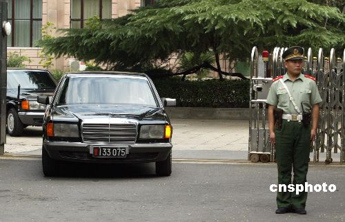八月四日,正在北京举行的第四轮六方会谈进入第十天。图为朝鲜代表团团长金桂冠的车辆离开大使馆前往钓鱼台国宾馆。作者:廖文静