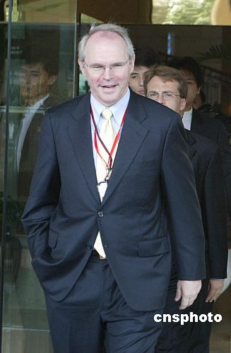 图:希尔微笑面对第四轮六方会谈进入尾声