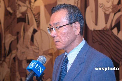 非洲联盟首脑会议当地时间八月四日决定继续保持非洲国家的团结,这意味着非洲国家拒绝接受由日本、印度、德国和巴西组成的四国联盟提出的有关联合国安理会改革的方案。消息传出,日本驻联合国代表大岛贤三神情凝重。图为他八月四日上午在联合国总部接受媒体采访。作者:刘小青