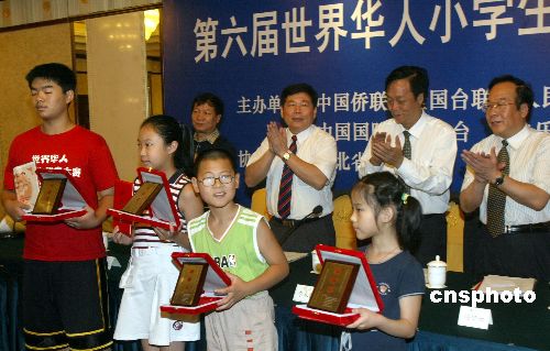 八月五日,由中国侨联等单位主办的第六届世界华人小学生作文大赛在北京华侨大厦颁奖,随着全球“汉语热”的升温,此次大赛吸引了三十一个国家和地区七百余万华人小学生参赛,促进了世界各国华人少年儿童之间的文化交流。作者:史利