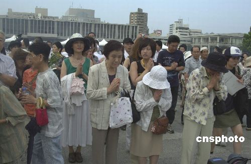 中新网8月6日电 日本广岛6日举行仪式纪念广岛遭原子弹袭击60周年。1945年8月6日美国在二战结束时在广岛市投掷了世界第一颗原子弹。