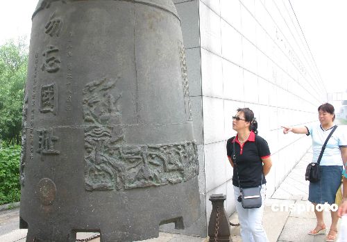 2005年8月7日,沈阳市民在沈阳“九一八”历史博物馆参观警世钟。连日来,沈阳市民纷纷到“九一八”历史博物馆参观,勿忘国耻,永记历史。作者:曹精义