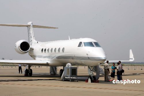 八月九日至十一日,一架湾流G550喷气公务机在上海虹桥国际机场参加亚洲公务机会展展示,该公务机是美国“空军一号”启用的飞机之一,据说,美国总统几乎每天都乘坐。该公务机机舱富丽堂皇,世界上先进的机上通信设备随手可得,是现代化高科技与舒适氛围的完美结合。作者:潘索菲