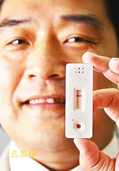 蒋凌辉说,这套测试器的优点是快速,可自行在家中进行测试,只需将手指的血液滴进检验器上,15分钟后会显示结果,避免患者求诊时感到尴尬或被歧视的疑难。