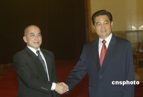 图:胡锦涛会见柬埔寨国王西哈莫尼