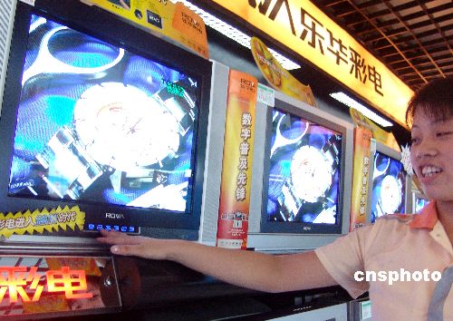 2005年8月10日,一位消费者在郑州某家电商场感受乐华彩电的触摸电视。她只用手指轻轻触摸按键,既完成了操作,也和过去的按键有了明显的区别。据介绍,触摸技术是电视功能操控方式的新一代概念,继旋钮时代、按键时代后,“触摸”时代即将到来。作者:马健