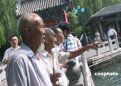 8月12日,为了庆祝抗战胜利60周年,在山东省民政部门的组织下来自全省各地的十几位老八路聚集济南,畅游趵突泉美景。老战友们六十年后重相聚,在一起观看美丽的泉城风光,追忆过去抗战的岁月,重游战斗过的地方,个个心潮澎湃。作者:周青先