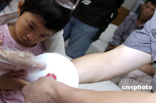 中新社兴宁八月十三日电 (记者 唐贵江)广东兴宁“八·七”特大透水事故中被困矿工家属的DNA检验血样提取工作,今天正式展开。来自梅州等地的法医从今天早上起在各矿工家属安置点进行血样采集。