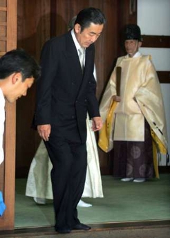 日本内阁的经济产业大臣中川昭一参拜靖国神社