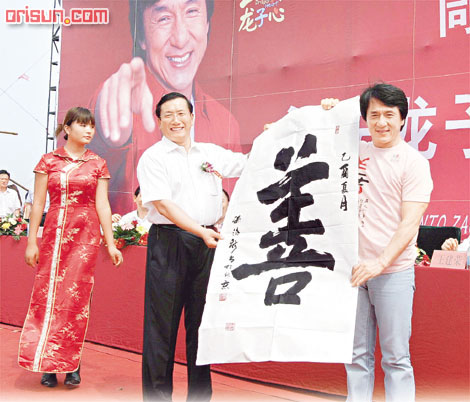 在主持奠基仪式的时候,成龙竟一度眼泛泪光。仪式期间,有一位小妹妹冲破公安人墙,趋前欲向成龙索取签名,但遭工作人员阻拦,成龙见状即发挥爱心,自愿替该女孩在背部签名。